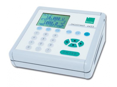Measurement and sourcing for 13 thermocouple models, 13 RTD models, resistance, current, voltage, frequency, impulse, pressure, force, torque and displacement make the model 4423 a complete, universal calibrator. Arrow keys, the direct input of numerical values and 3 function keys for operator control, plus generous background illumination and menu operation through a large graphic display create a powerful, self-explanatory user interface. The DIGISTANT® model 4423 has a robust aluminum console housing.