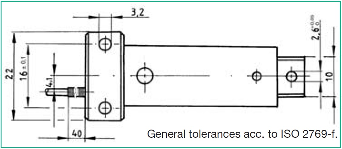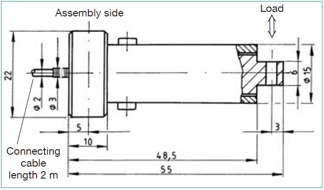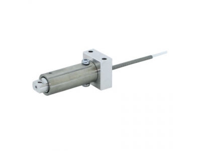 The Burster sensor element consists of a double bending beam with applied strain gauges. Changes in the ohmic resistance of the strain gauge full bridge caused by applied forces are converted into electrical voltages. The precise value(characteristic value) of the output voltage, resulting from the application of a rated force to the sensor, is specified in the accompanying calibration protocol. The sensor has to be mounted by two screws on the cable side. The opposite is meant to receive applied forces (loads). Once the rated stress or strain is exceeded by 20%, further deflection of the bending beam is prevented by an integrated, mechanical stop. This protects the sensor element against permanent deformation.