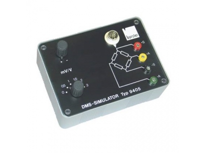 In such cases, the measurement variable must be simulated electrically. This can be done very easy and with high precision using a simulator model 9405. Instead of the sensor, the simulator is connected to the measuring chain. It loads and thus tests the supply voltage source, and simulates the zero signal and the signal for a load, corresponding to the sensitivity of the sensor.
