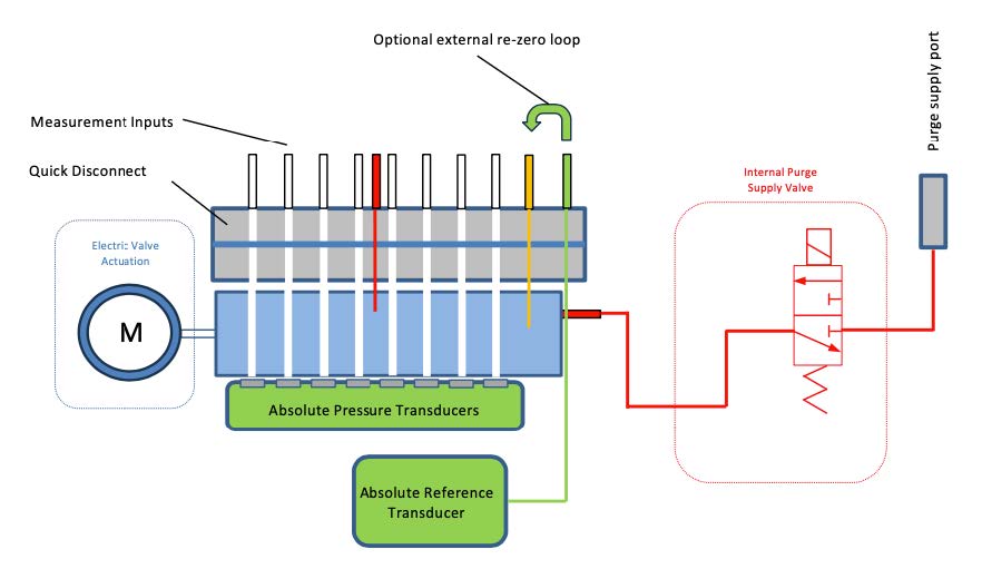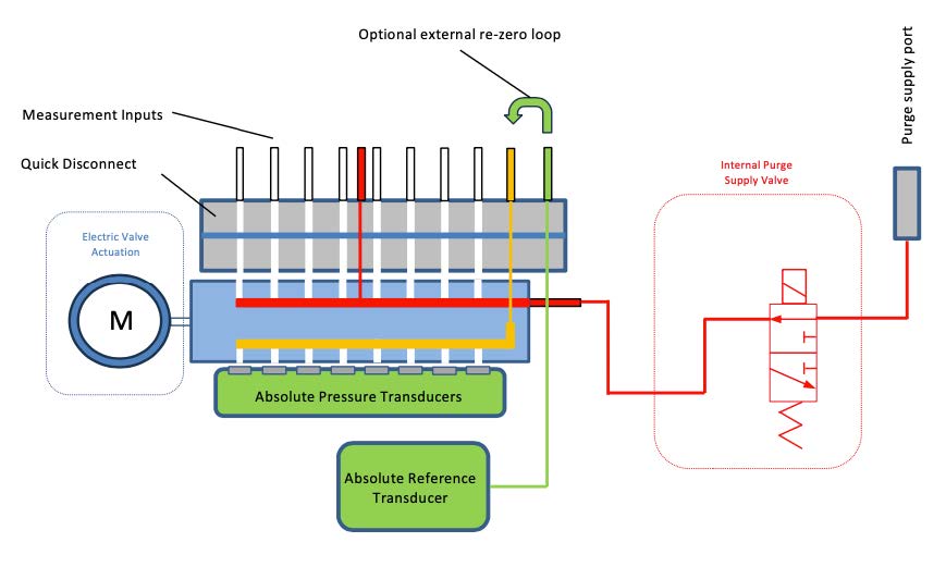 The system outputs over Ethernet (TCP/IP & UDP), CAN, and IENA, with synchronization via IEEE 1588 PTPv2 and 24-bit data resolution. An electrically actuated 3-position shuttle valve allows automatic purge and re-zero functions without requiring external high-pressure air. The unit also includes internal heaters to support operation down to –55°C.