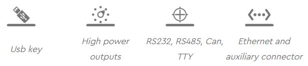The new T9730 equipment includes ports for the USB slave, RS232, RS485, Can bus and TTY. Assembly may also include an optional Ethernet port and a 26-pole connector with 4 inputs and 8 outputs, which are completely programmable, for interfacing with the external valves, safety barriers, switches, etc...