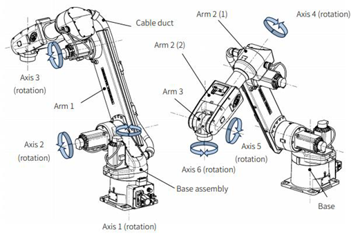 6-axis robots are designed to perform complex tasks with high flexibility and reach. Mimicking the movements of a human arm, these robots operate on the X-Y-Z plane and add yaw, pitch, and roll capabilities. In addition to the X-Y-Z coordinates, the robots also use A-B-C coordinates, where A is rotation around the X-Axis (Roll), B is rotation around the Y-Axis (Pitch), and C is rotation around the Z-Axis (Yaw). This six degrees of freedom allows 6-axis robots to execute a wide range of movements and applications.