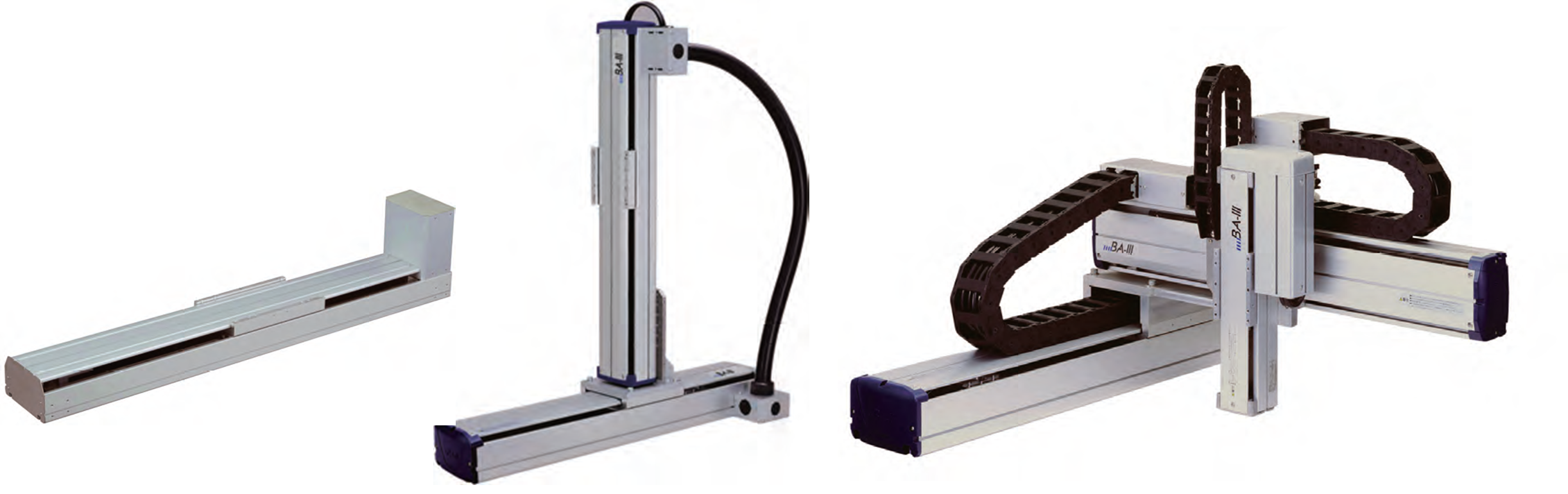 BA-III Series The BA-III Series represents the latest advancements in Cartesian robot design. This series is engineered for simplicity and ease of use, requiring little to no programming. The enhanced design allows for longer intervals between routine maintenance and features a compact footprint. These robots come as a complete plug-and-play system, with all cables, connectors, junction boxes, actuators, servo motors, and controllers provided and pre-assembled. This reduces setup complexity and engineering time, as there is no need to calibrate motors to the actuator and controller.
