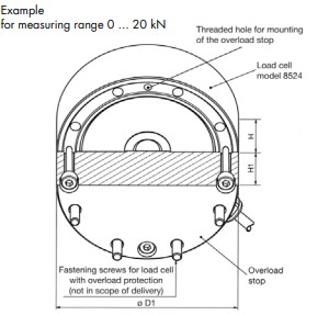 The Burster 8524 load cell comes with an optional overload protection guards the load cell against damage under a static load that exceeds the safe load (150% of the rated load). The overload protection is available up to the measurement range of d 20 kN. Protection is achieved via a mechanical stop, which limits the measurement displacement of the sensor (to about 80 μm).