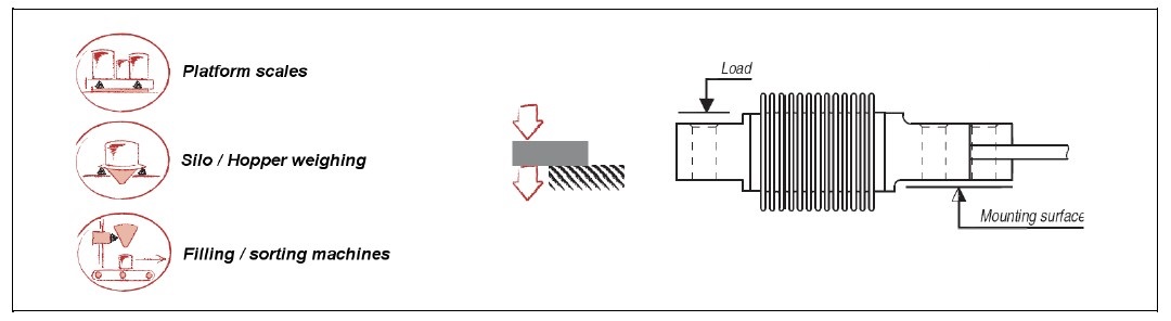 However, to avoid measurement errors and damage to the load cell from torsion moments, off-center loads, and transverse or lateral forces, loads should be introduced as closely as possible in the direction of measurement. Stay rods or guide rolls can be used to prevent these influences. It is crucial to handle the load cell and thin-walled bellows with care and avoid overloading them, particularly when dealing with load cells with small rated capacities.