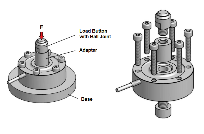 The purpose of using a load button with ball joint accessory with pancake load cells is to eliminate lateral or side loads and compensate for slight inconsistencies in the tooling. The load button has a rounded surface that allows it to self-align with the surface being measured. This means that even if the load is applied at a slight angle, the load button will adjust to ensure that the force is applied perpendicular to the surface. This is important because lateral or side loads can cause inaccurate readings and affect the overall measurement accuracy.