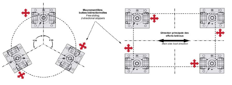 The SCAIME SILOSAFE kit is designed for tank and hopper weighing applications. It tolerates side shifting of the loading point, due to structure expansion for instance. It also includes heaving duty stoppers in all directions.