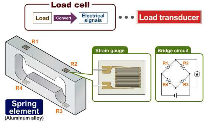 A strain gauge-based load cell is a type of load cell that uses strain gauges to measure weight or force. Strain gauges are attached to the load cell body at specific points where the device is likely to undergo strain when weight or force is applied. When weight or force is applied to the load cell, it causes a deformation in the metal body, which in turn, causes a change in the resistance of the strain gauges. The change in resistance is then converted into an electrical signal, which is proportional to the weight or force being measured.