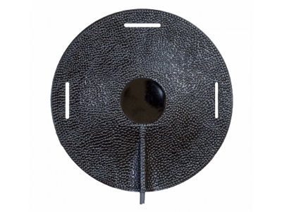Triaxial transducer with rubber pads for measuring whole-body vibration in accordance with ISO 2631, ISO 8041, ISO 10326-1, and ISO 7096.