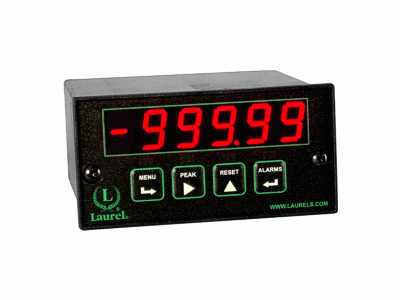 Designed for system use. Optional plug-in boards for communications and control include Ethernet and other serial communication boards, dual or quad relay boards, and an isolated analog output board. Laureates may be powered from 85-264 Vac or optionally from 12-32 Vac or 10-48 Vdc. The display is available with red or green LEDs. The 1/8 DIN case meets NEMA 4X (IP65) specifications from the front when panel mounted. Any setup functions and front panel keys can be locked out for simplified usage and security. A built-in isolated 5, 10, or 24 Vdc excitation supply can power transducers and eliminate the need for an external power supply. All power and signal connections are via UL / VDE / CSA rated screw clamp plugs.