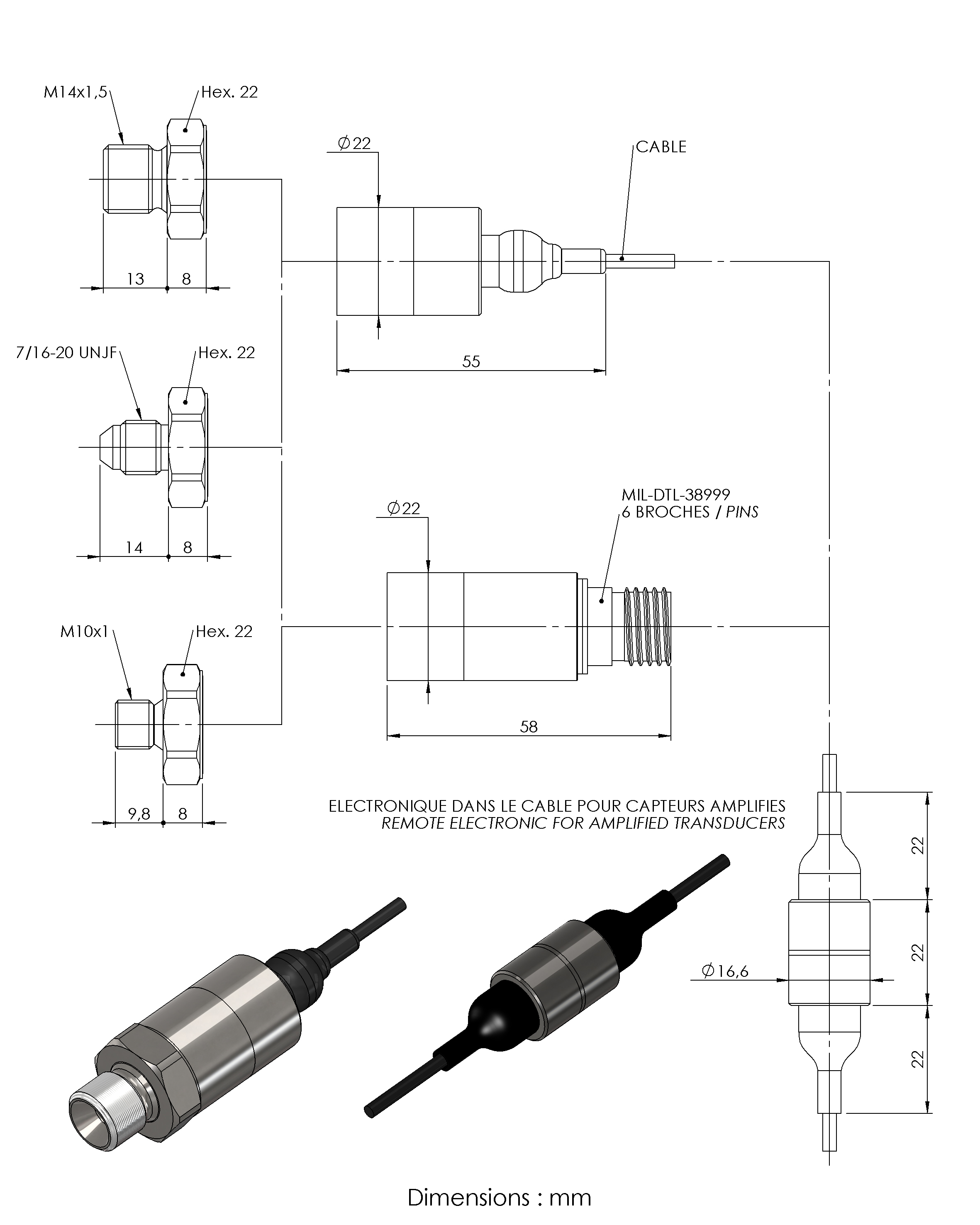 Operating from –40 up to +175°C, the PHT220 series is dedicated to high temperature pressure measurements. With all stainless steel wetted parts, it is compatible with most media, including corrosive fluids used in automotive, aerospace and energy industries. Equipped with the premium thin film technology developed by EFE, its performances and stability over wide temperature range are excellent. The PHT220 is available with unamplified output (mV/V), compensated in temperature, up to ±0.005%EM/°C, to deliver the best accuracy. Amplified output (Vdc) is also standard, thanks to a high performance and ruggedized electronic module, remote in the cable in a stainless steel package.