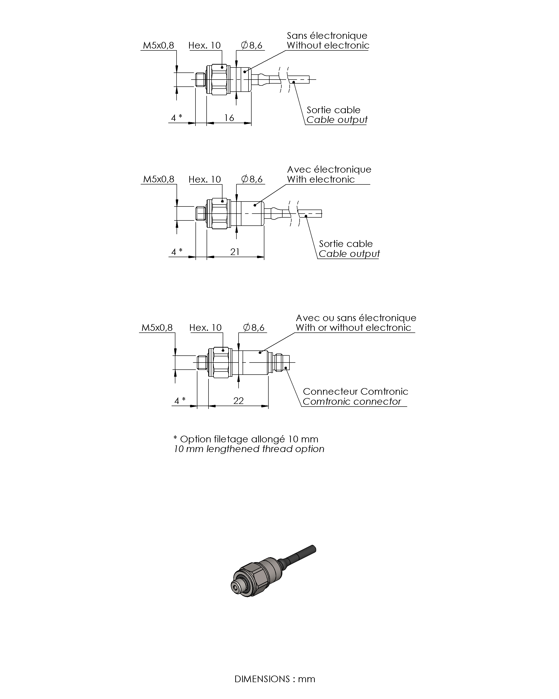 The PST860 series is a miniature pressure sensor. Operating from –40 up to +125°C, three compensated temperature ranges are available to best suit your application‘s environment. Its wetted parts being stainless steel, is compatible with most media including corrosive fluids used in automotive and aerospace industries. High performances and stability over temperature are achieved thanks to EFE proprietary sensing technologies. The robust and proven design of the sensor ensures reliability in your application. The PST860 series is available with unamplified (mV/V) and amplified voltage output (0,5-4,5Vdc), integrating a high performance and ruggedized electronic module.