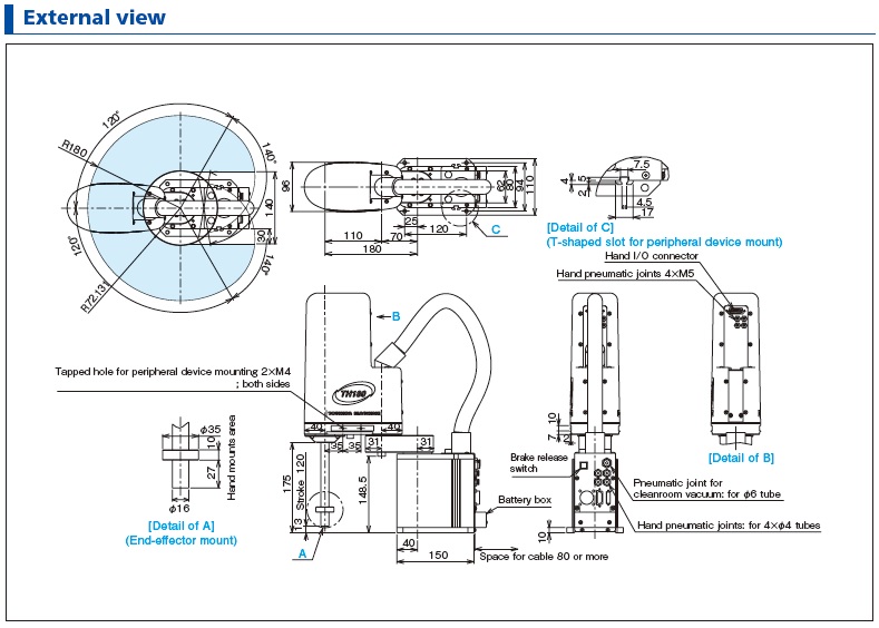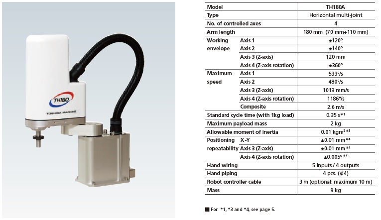 obot line, the Toshiba TH180 Robot has a compact body with 180mm arm span and a maximum payload of 2kg (4.4lbs.) ideal for use in high precision applications. This robot is capable of handling several parts at the same time.