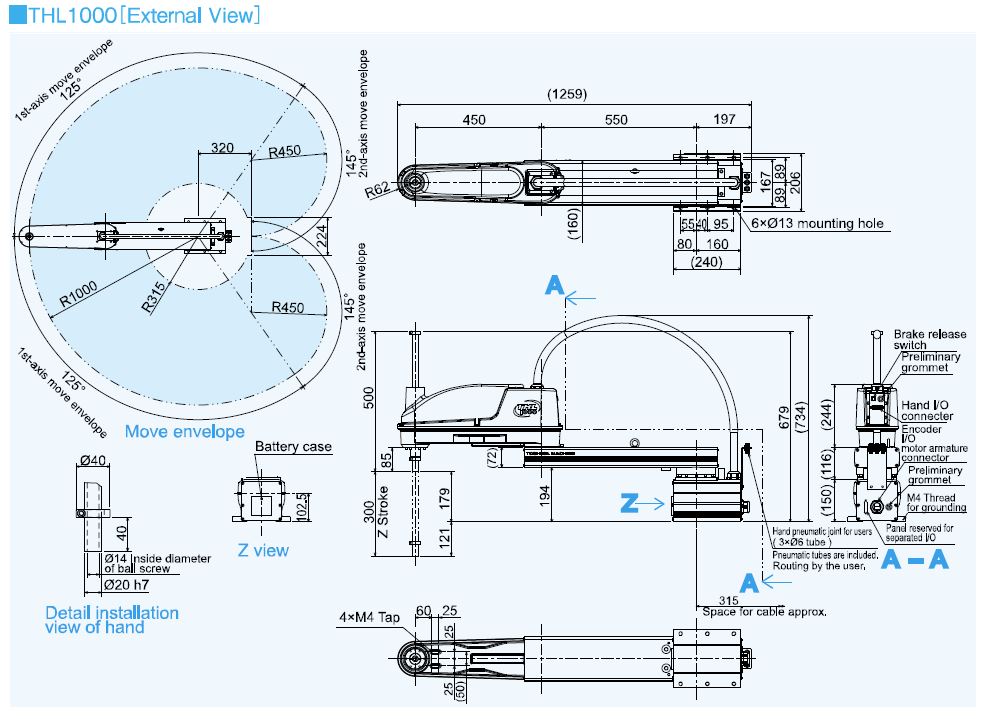 Shibaura's THL1000 Robot features an arm length of 1000mm and payload mass of 10kg. It also features an envelope of 4 axes, a Z-axis rotation of 360 degrees, and max speed of 5.0m/s.