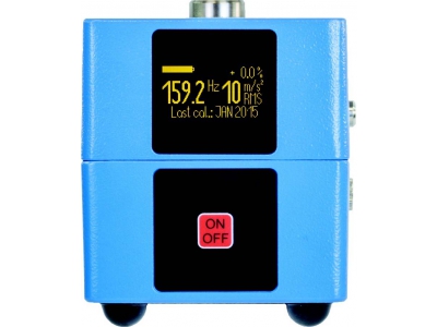 10 m/s² acceleration = 10 mm/s velocity = 10 µm displacement. The unit has just one on/off push-button. A bright OLED display