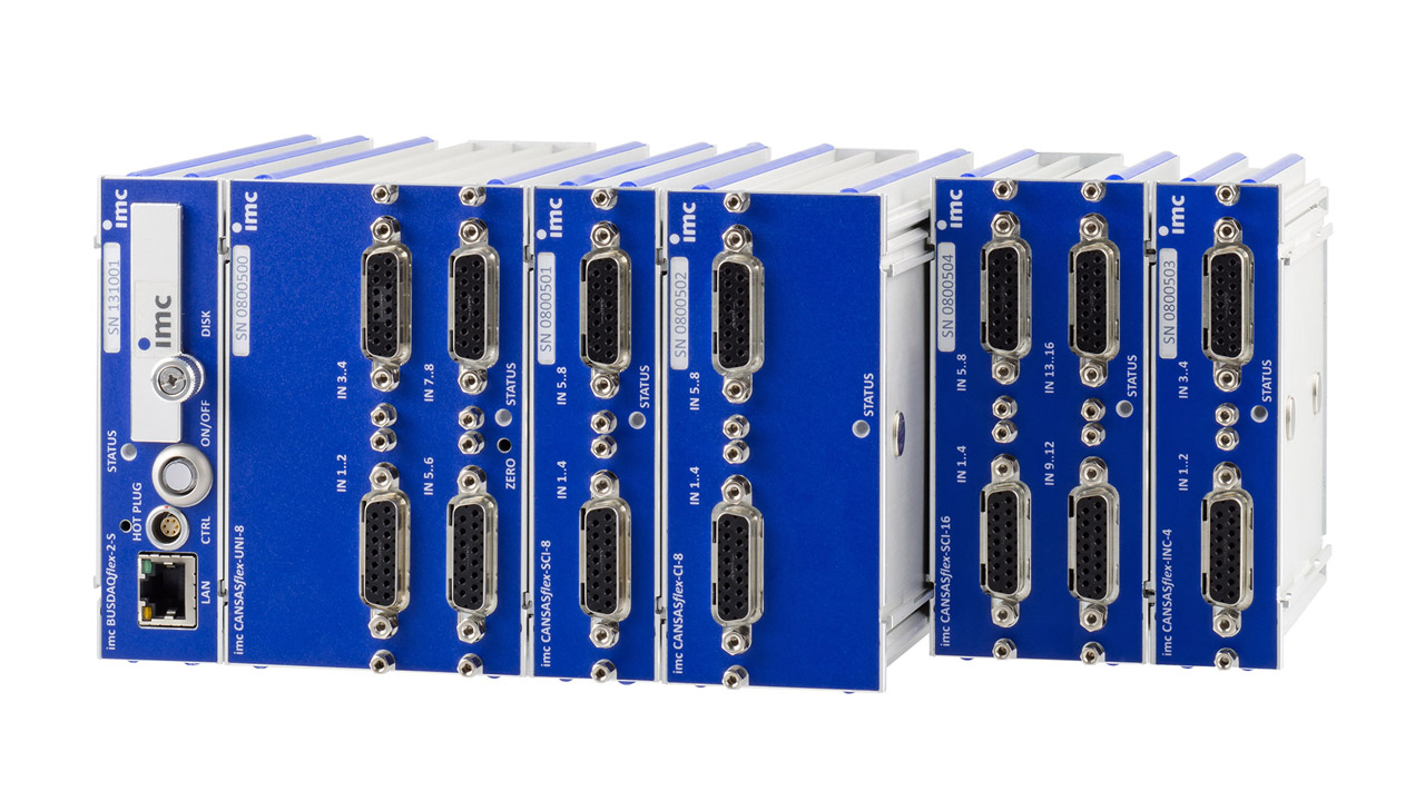 Whether test stand, on-board vehicle application or both – any application that demands time-synchronous, precise data acquisition with a few or large channel counts – imc CANSAS flex modules are the answer. Equipped with the most up-to-date, high-precision measurement amplifiers, imc CANSAS flex modules allow for direct connection to all types of sensors and signals in electrical or mechanical applications. The digitized measurement signals exit as CAN messages and can be read and recorded by any measurement, automation or control system with a CANbus or Ethernet ( BusDAQ base module) interface. Additionally, imc CANSAS flex modules can operate in extended temperature ranges and endure high vibration and shock.