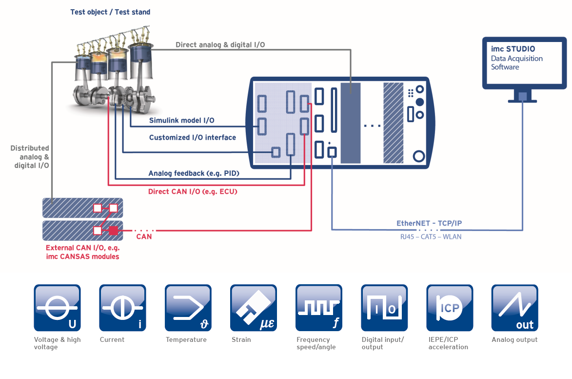 - BusDAQ processor provides data stream with Ethernet TCP/IP and imc Studio Software