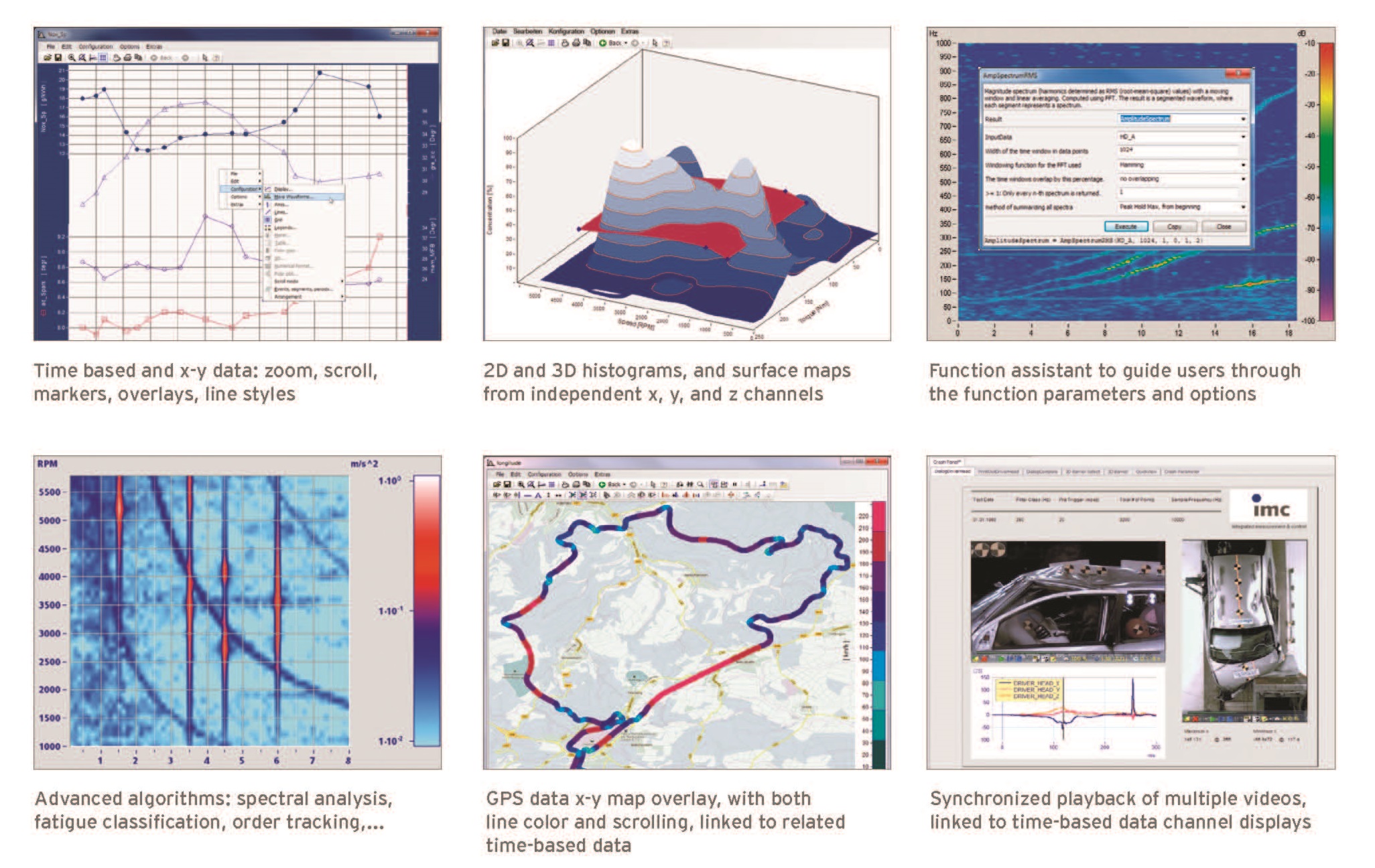 You have data. You need answers. Fast. Regardless of where your data originates – test stand, bench top, or mobile measurements – imc FAMOS provides you with the versatile software tools necessary to visualize and analyze your data, automating routine and complex tasks – from data import to test report. imc FAMOS is designed for your day to day analysis needs: it is the ideal tool for engineers constrained by the limited functionality of vendor supplied “viewer” software, seeking independence from outside programmers, or overwhelmed with data analysis and reporting in a spreadsheet or programming intensive environment.