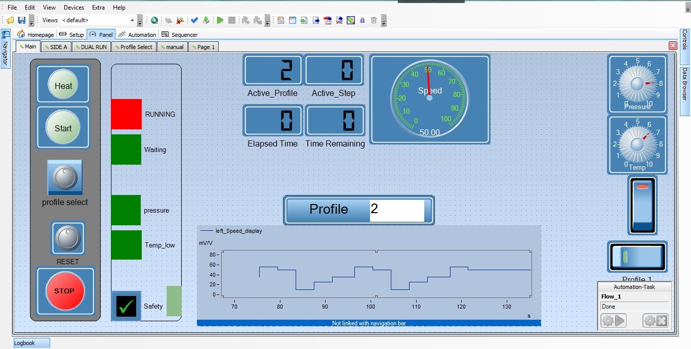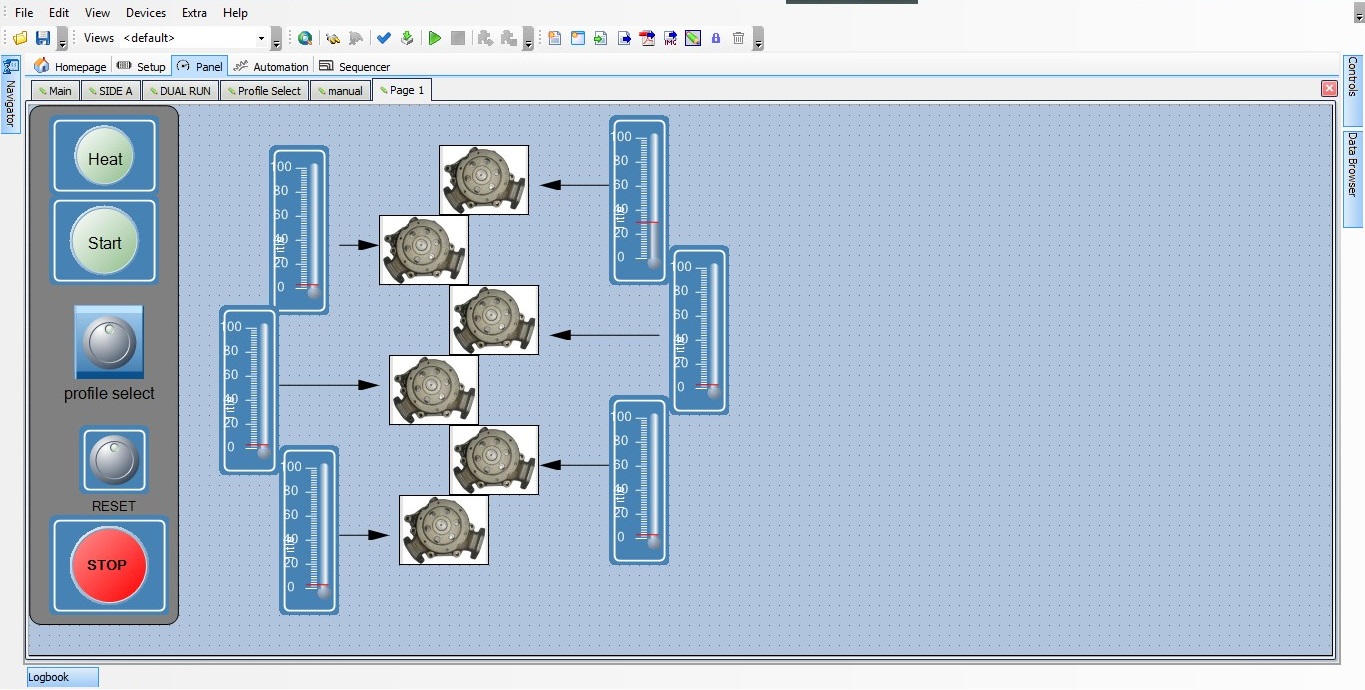 A key factor in the success of this product is the ease of configuration. The system uses a visual based configuration technique that allows quick page setup and a variety of graphical displays. The Studio software allows the user to easily configure the steps that take the system through the test and react to changing conditions.
