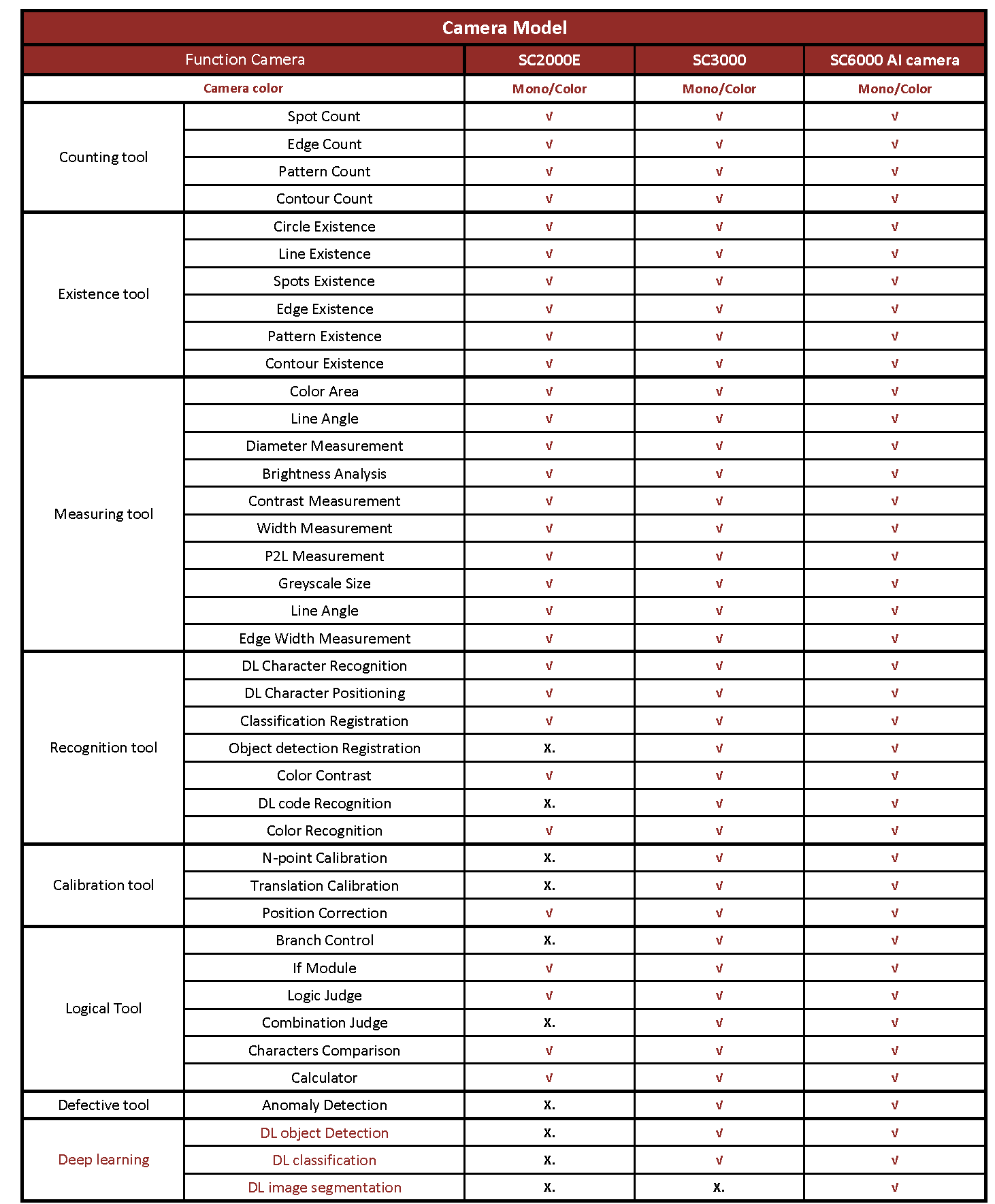 The thought process behind the development of the SC3000X smart camera is to include as much functionality as possible, to make it the most versatile vision solution in its category. Along with the typical defect detection, additional features such as measurement tools, pattern and contour recognition, code reading, custom AI enabled OCR training, object counting, robot positioning using Deep Learning object recognition.