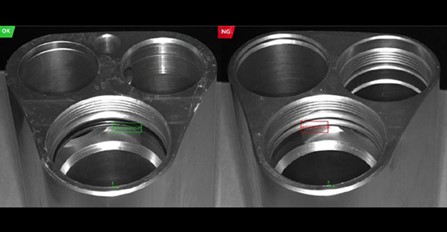 Verifies O-Ring presence through pixel matching in a set region, using simple color or contrast checks with the MV-SC2016 camera for efficient, accurate detection.
