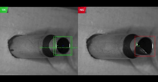 This application ensures bullet casings meet exact roundness specifications. Using AI Defect Detection, the system applies either circle detection or arc segment flaw detection to achieve precise results.